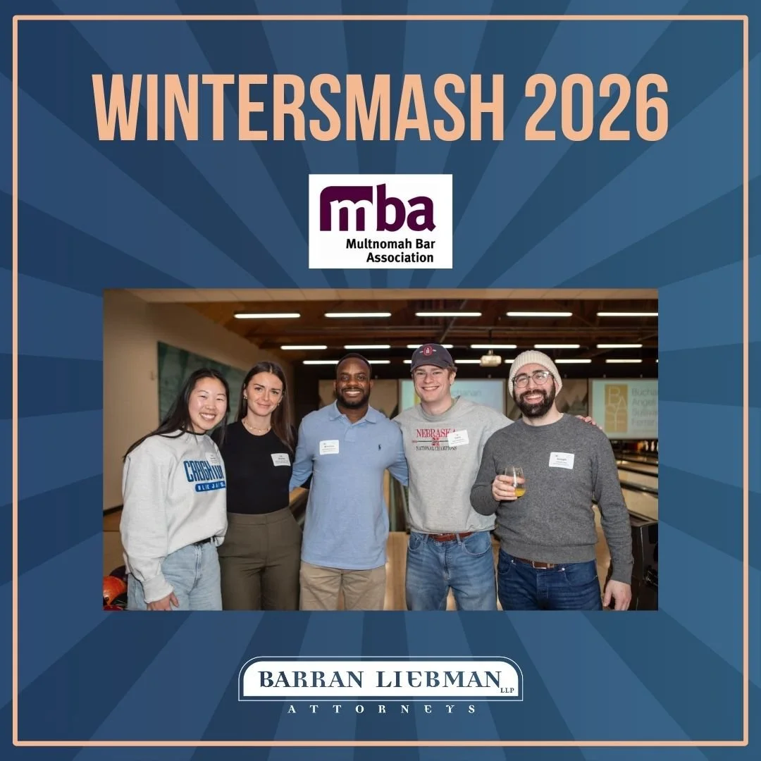 On Saturday February 21, 2026, Barran Liebman attended and served as a sponsor for the 22nd annual Multnomah Bar Association (MBA) WinterSmash. This annual event supports Multnomah CourtCare, CourtSupport, and CourtConnect, raising money for services such as free drop-in childcare for families tending to business at court, bilingual navigator services and courthouse accommodations, and civic education geared towards making the court system more approachable.